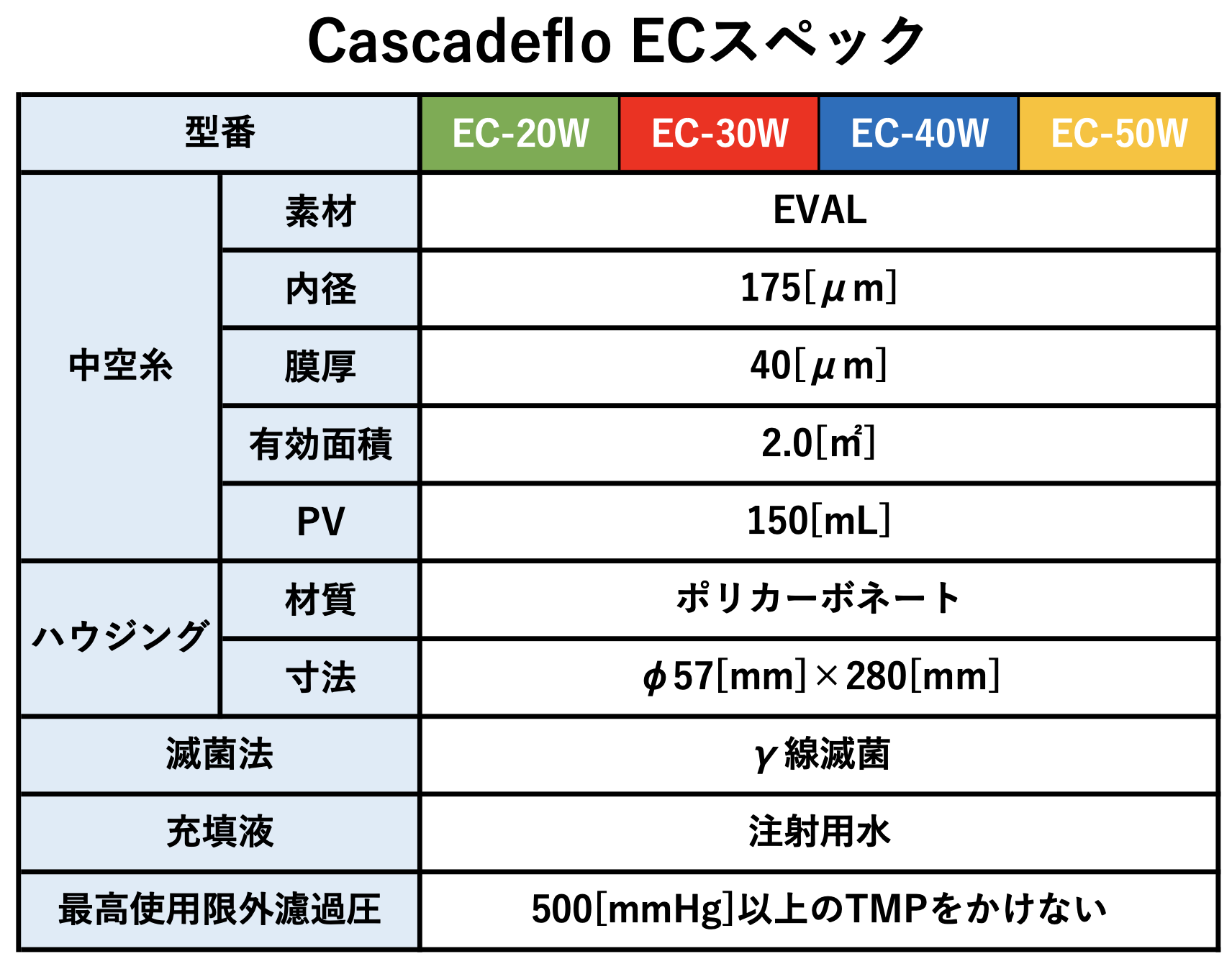 2次膜としては、旭化成社製Cascadeflo EC(カスケードフロー)が販売されています。