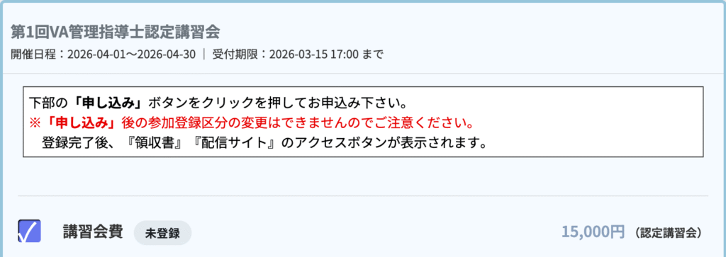 VA管理指導士は5年毎に更新制の予定であり、更新にかかる諸費用、および更新のための学会参加などの諸費用が必要です。更新に際し30,000〜35,000円程度の出費+交通費は想定するべきでしょう。