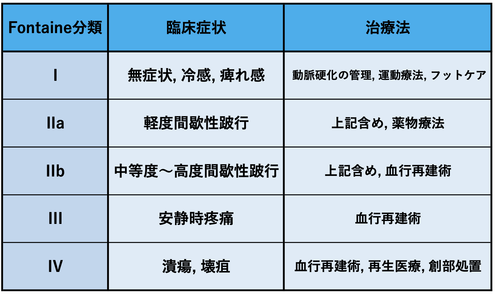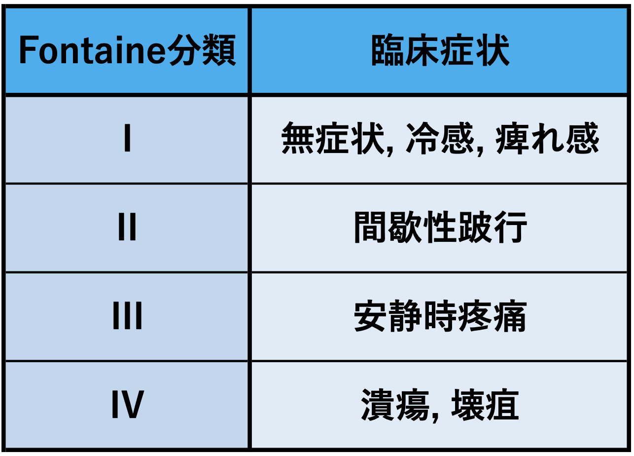 本記事では、虚血肢に関わるFontaine分類、Rutherford分類、WIfI分類の3つを中心に説明します。