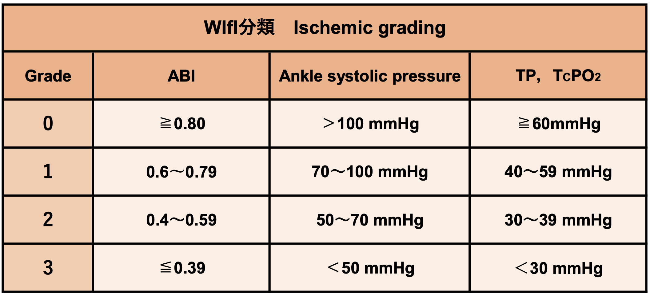 CLTIの下肢虚血重症度評価にはWIfI分類の使用が推奨されるようになりました。