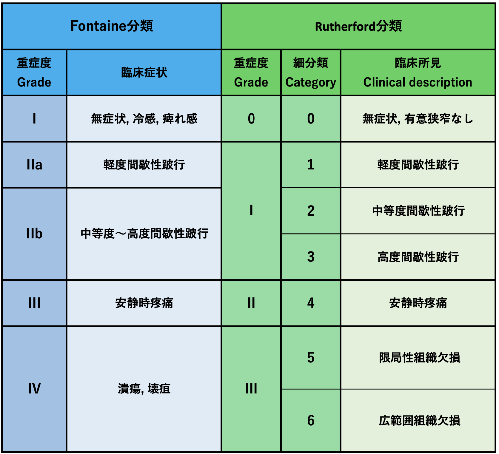 下肢虚血に関する分類はいくつも存在しますが、その中でも”Fontaine分類“や”Rutherford分類“に関しては、執筆してきた記事内でも何度か登場しています。